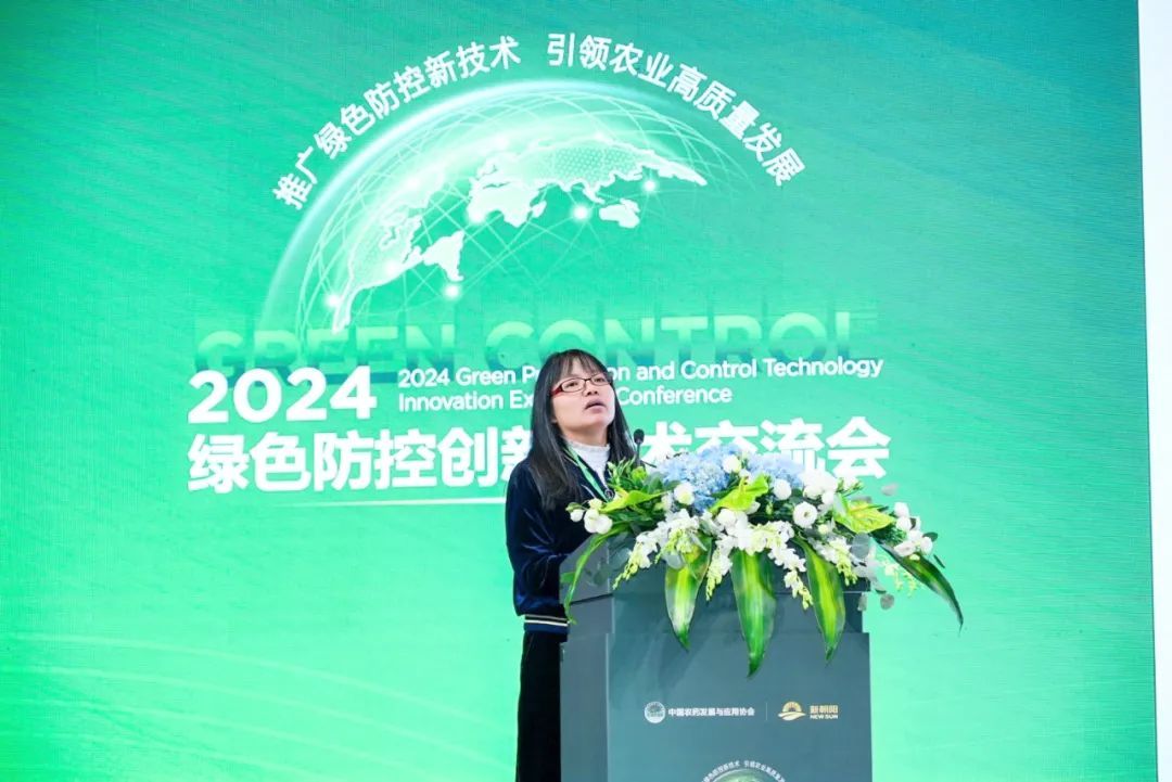 全國(guó)農(nóng)技推廣服務(wù)中心副處長(zhǎng)劉慧作了《綠色防控發(fā)展現(xiàn)狀及趨勢(shì)》的報(bào)告,強(qiáng)調(diào)了科學(xué)用藥技術(shù),包含推廣應(yīng)用高效、低毒、低殘留農(nóng)藥;推廣應(yīng)用新型植保機(jī)械,超低量噴霧技術(shù);統(tǒng)防統(tǒng)治與綠色防控融合。2023年全國(guó)主要農(nóng)作物病蟲(chóng)害綠色防控覆蓋率達(dá)到54.1%,年減少化學(xué)農(nóng)藥使用量2.0萬(wàn)噸,推廣生物農(nóng)藥效果顯著。